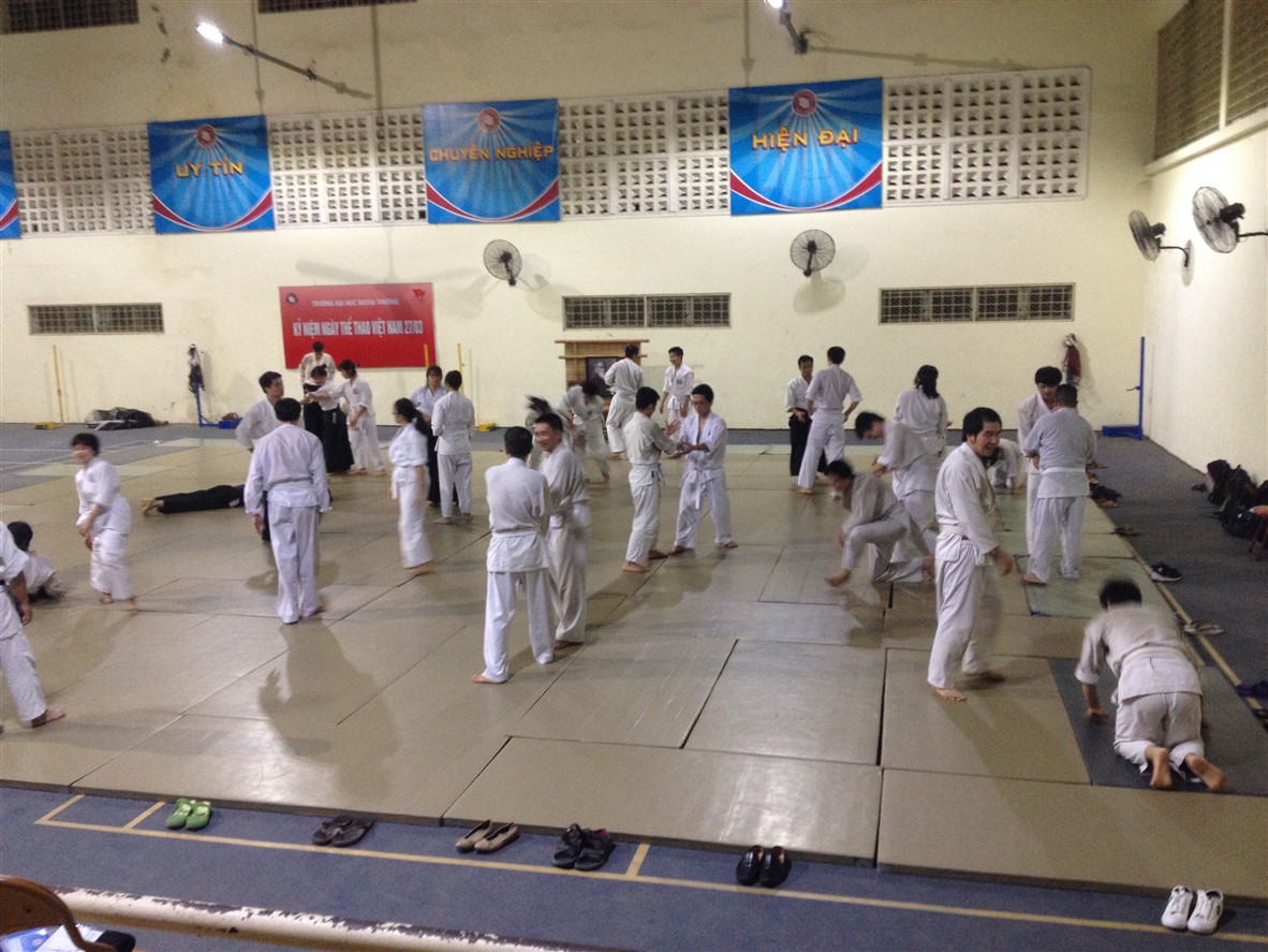 Nhà thể chất trường Đại học Ngoại Thương, số 91 phố Chùa Láng, phường Láng Thượng, quận Đống Đa, thành phố Hà Nội.
